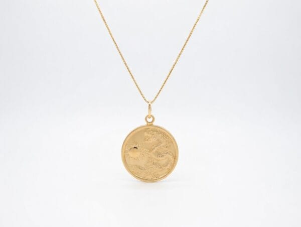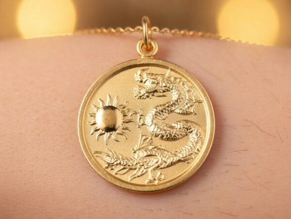 Weighing just 2.63 grams, the pendant feels surprisingly light and comfortable for everyday wear. The high-polish finish enhances the intricate engraving, making the dragon and sun motif come alive with beautiful light reflections.