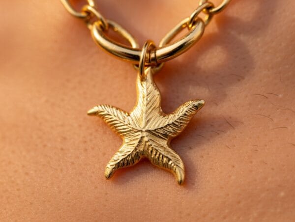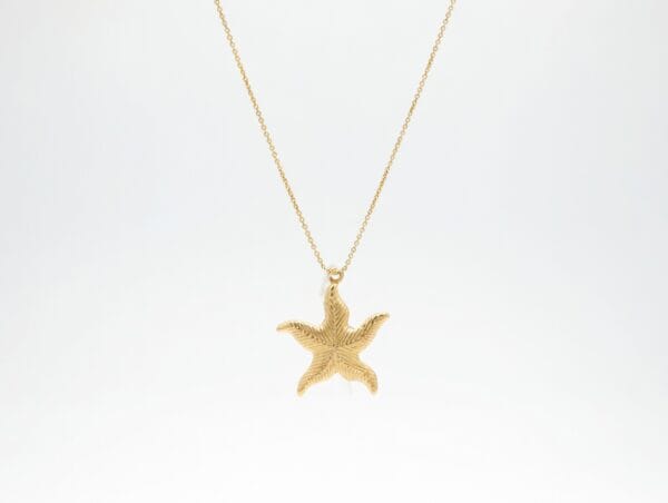 Add a touch of coastal elegance to your jewelry collection with this charming 18K yellow gold starfish pendant. Expertly crafted with fine engraved texture on each arm, the pendant catches light beautifully and moves gracefully with every step.