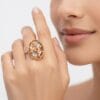 Weighing only 3.77 grams, this ring looks impressively big and substantial on the finger while remaining exceptionally lightweight and comfortable for all-day wear. The high-polish finish and intricate openwork give it a luxurious, three-dimensional appeal.