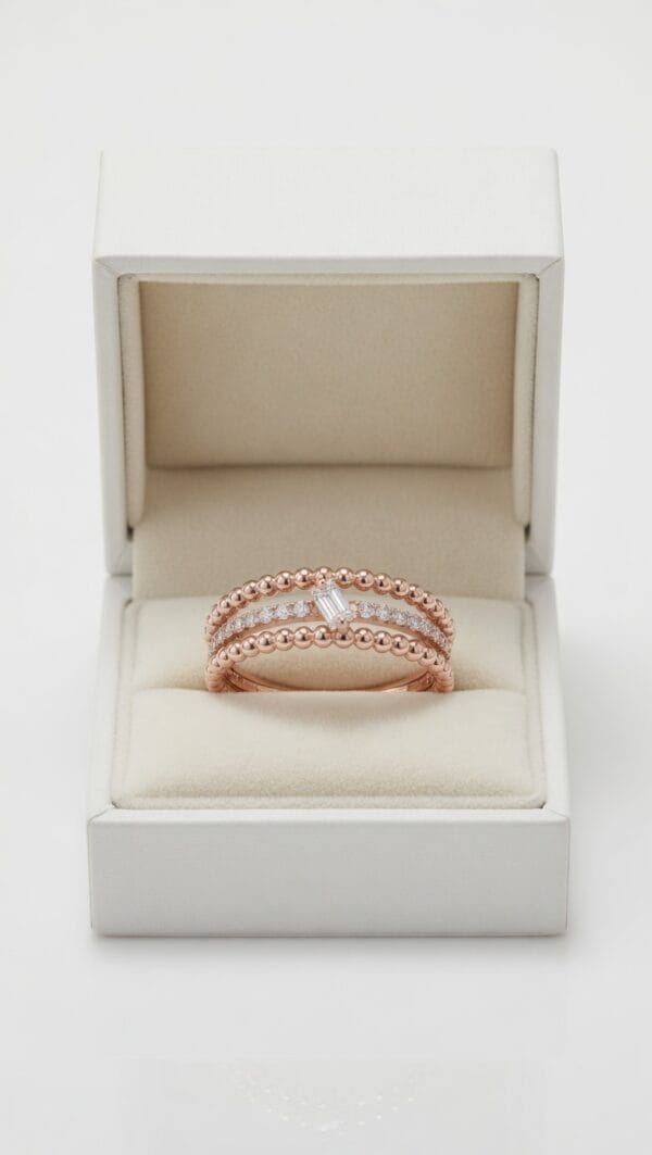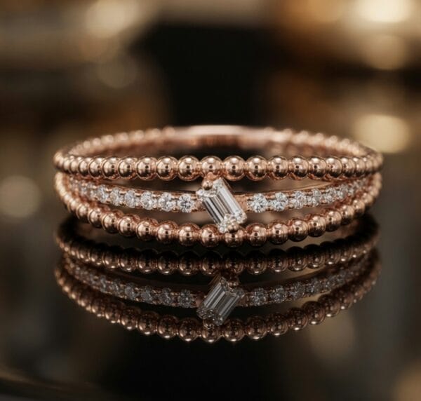 HomeShopDIAMOND JEWELLERIESRINGS18K Rose Gold Beaded Diamond Ring – Delicate Harmony