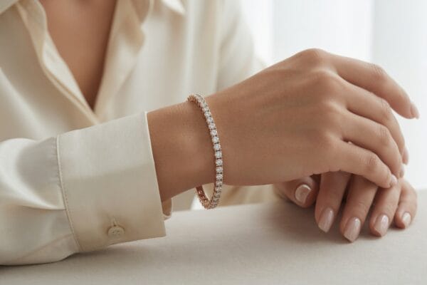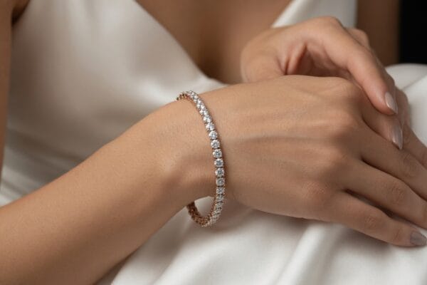 Designed as a classic tennis style with a secure clasp, it sits elegantly on the wrist and pairs perfectly worn alone or stacked with other bracelets. Whether for daily luxury or special occasions, this piece embodies enduring sophistication and modern glamour.