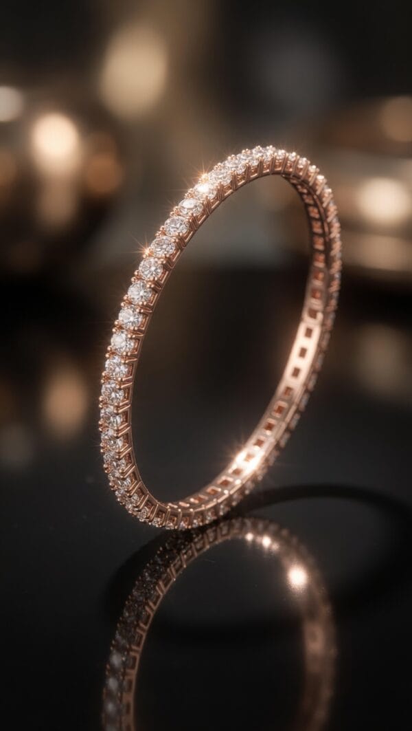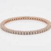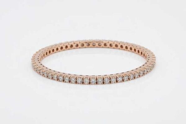 Elevate your everyday look with this stunning full eternity tennis bangle in rich 18K rose gold. Every inch of the bangle is meticulously set with dazzling round diamonds in a secure channel setting, creating an unbroken circle of fire and sparkle.