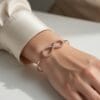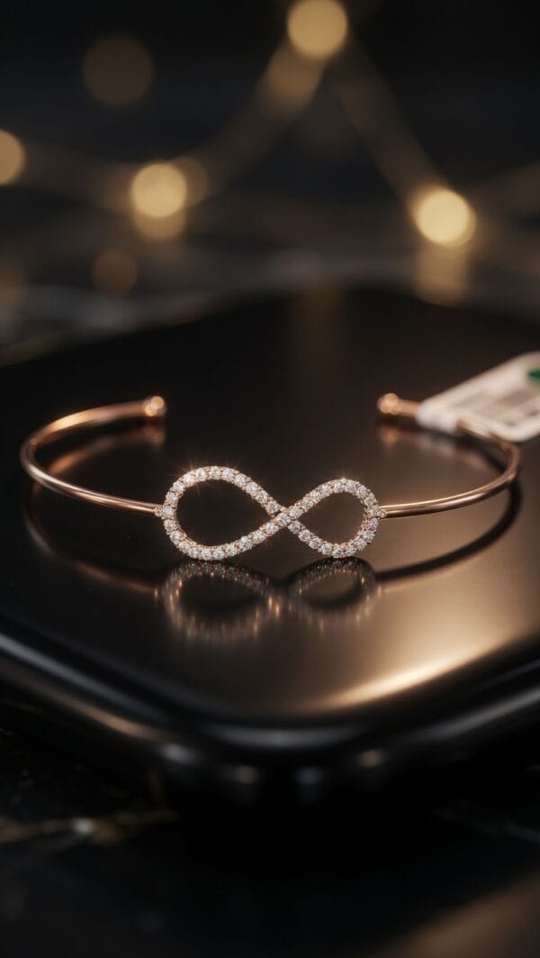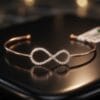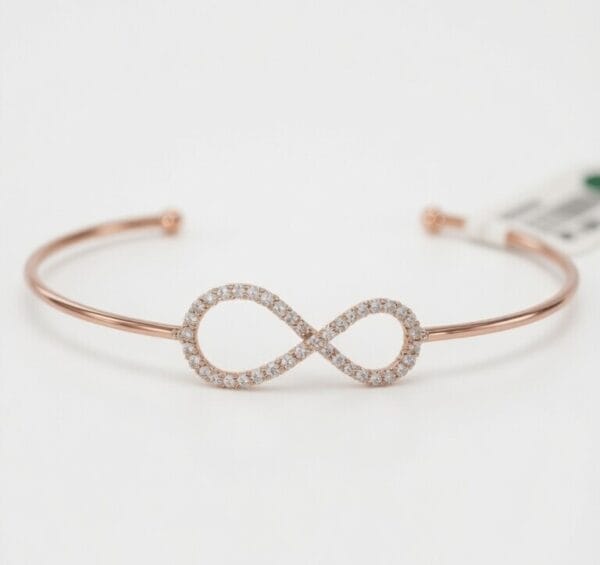 Weighing only 4.21 grams, this bangle is exceptionally lightweight and comfortable for everyday wear. The slim rose gold band offers a soft, feminine touch while the diamond infinity motif adds a touch of sparkle and meaningful symbolism.