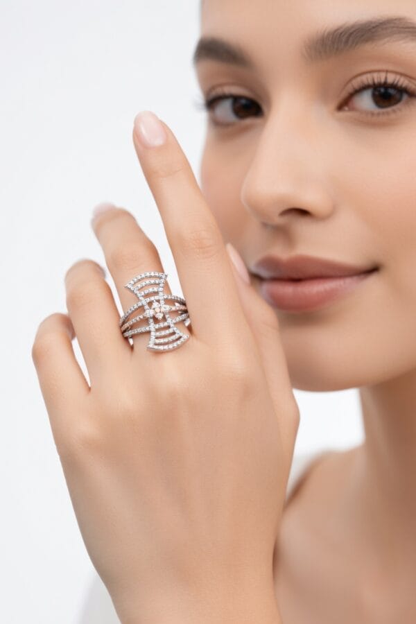 A timeless statement piece that combines modern geometry with classic diamond elegance — perfect for everyday luxury or special occasions.