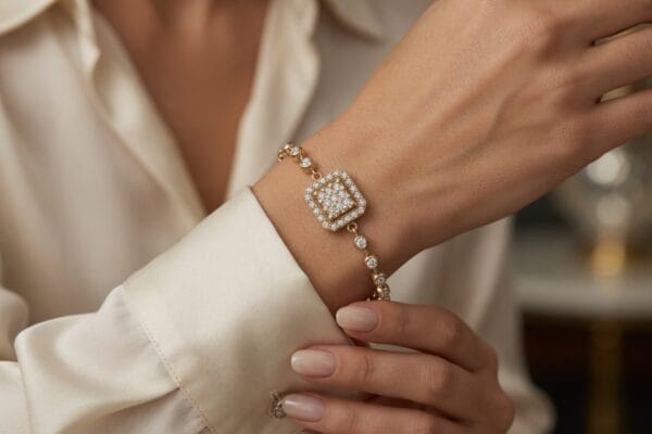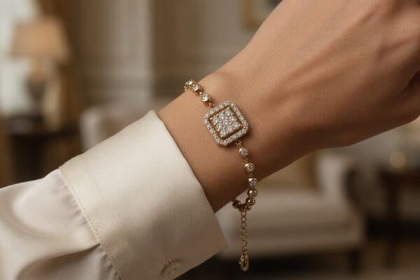 Versatile enough for both everyday elegance and evening wear, this bracelet makes a sophisticated statement whether worn alone or layered with other fine pieces. The secure lobster clasp and adjustable chain ensure a perfect fit.