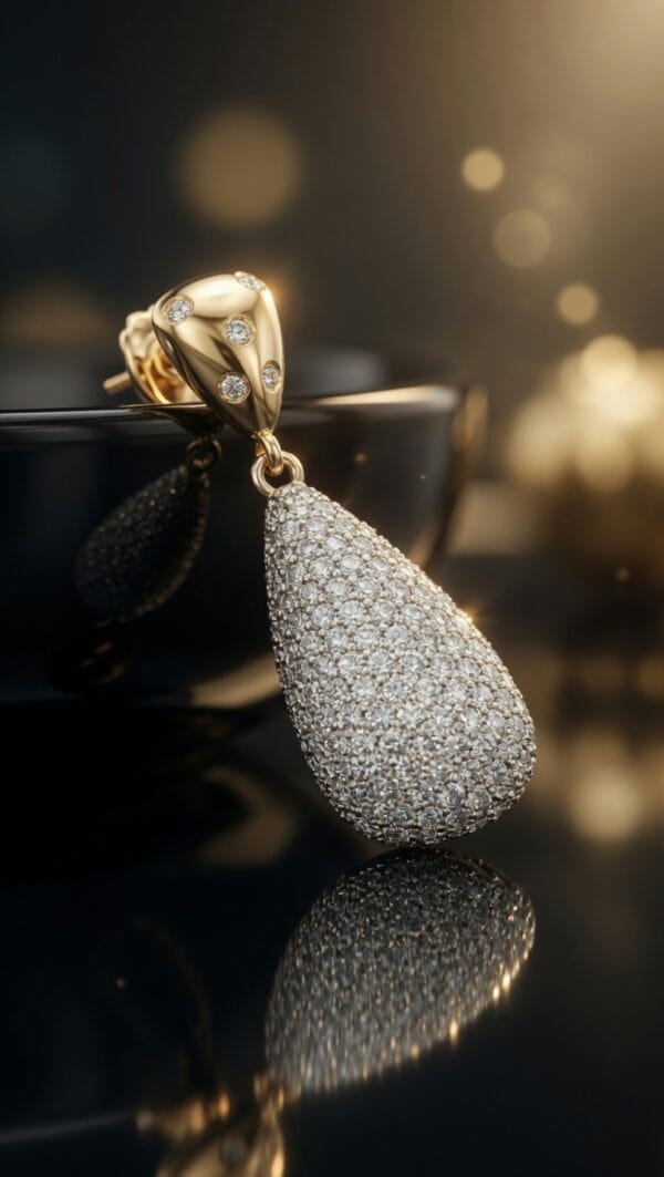 At a comfortable 4.39 grams per pair, the earrings feel substantial yet lightweight. The warm yellow gold beautifully enhances the fiery brilliance of the 1.30 carats of natural diamonds, creating a dazzling cascade of light with every movement.