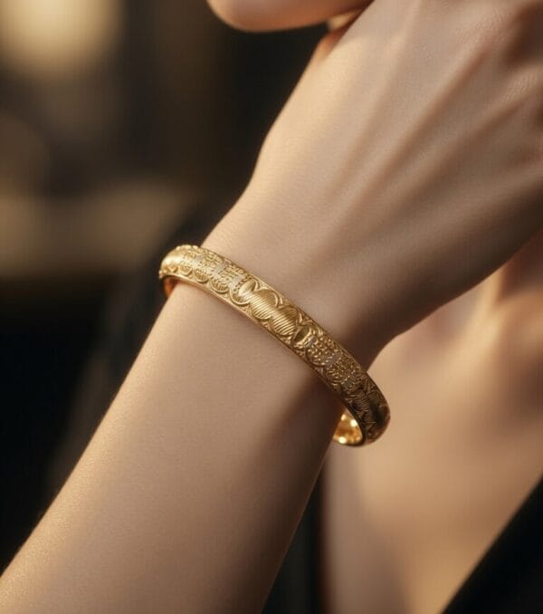 Weighing a comfortable 11.43 grams, this bangle provides the perfect balance of substantial feel and lightweight wearability. Its open cuff style ensures easy on-and-off convenience while maintaining an elegant and secure fit. A versatile classic that complements both traditional attire and modern ensembles — ideal for daily wear or as a thoughtful gift.