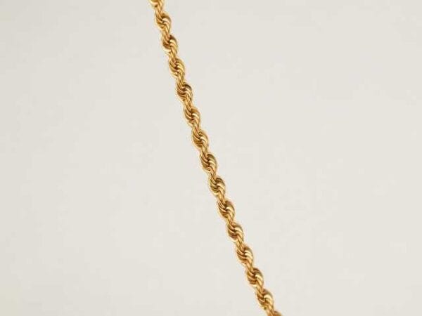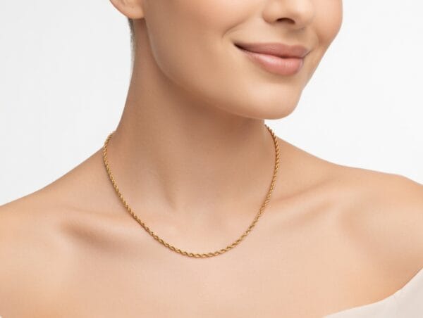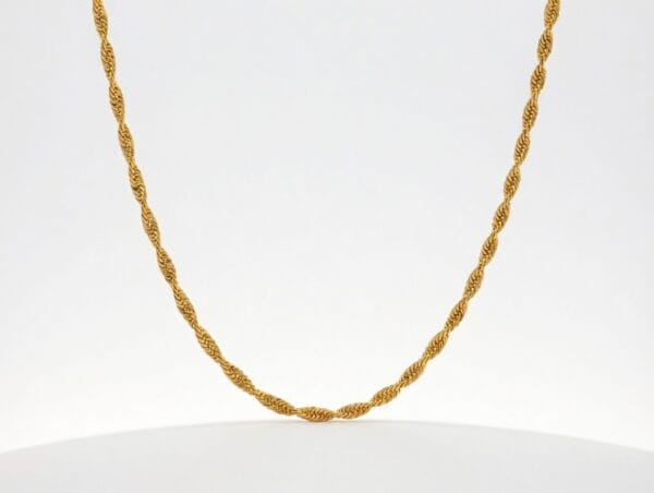 Experience timeless elegance with this finely crafted lightweight 22K yellow gold necklace. Featuring a classic twisted rope design, the chain offers intricate texture and a soft, radiant shine that catches light beautifully from every angle.