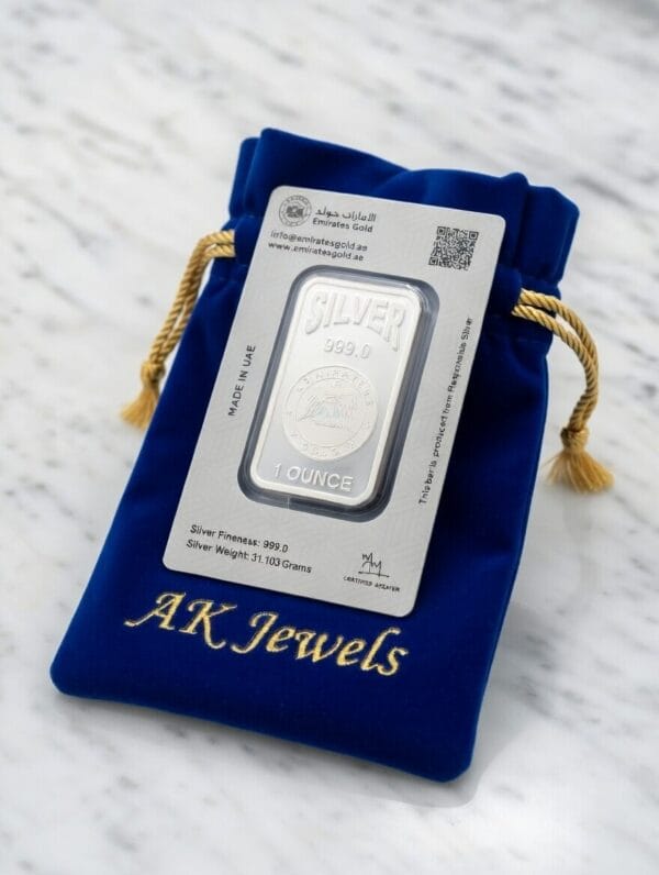 Each bar is made from .999 fine silver and produced by Emirates Gold, one of the region’s most reputable precious metals refiners. The sleek, updated design enhances its visual appeal while maintaining its intrinsic value.