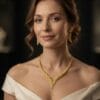 Crafted in pure 22K yellow gold, this stunning V-shaped necklace and earring set showcases exceptional artistry. The necklace (Ref: 22KGNK2127) features a bold, graceful V design with finely textured mesh panels and delicate linear accents that catch light beautifully from every angle. Weighing a substantial 26.55 grams, it offers a luxurious drape and presence.