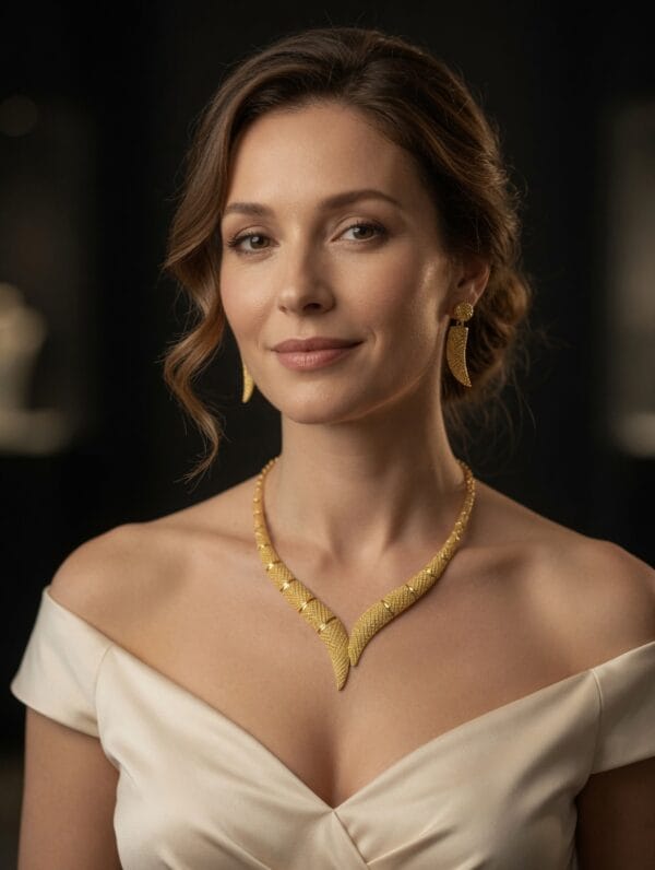 HomeShop22K GOLDEARRINGSLuxury 22K Gold Textured V-Necklace & Wing Earrings Set