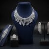 Command the room with this opulent 18K white gold diamond waterfall fringe parure. The centerpiece necklace (Ref: DNKG1060) showcases multiple rows of meticulously pavé-set diamonds flowing into a grand cascade of rectangular baguette and brilliant-cut stones, creating mesmerizing movement and fiery brilliance with every turn. Weighing a substantial 66.36 grams and set with 16.96 carats of dazzling diamonds (10.48 ct + 6.48 ct fancy diamonds), it drapes elegantly and exudes pure glamour.